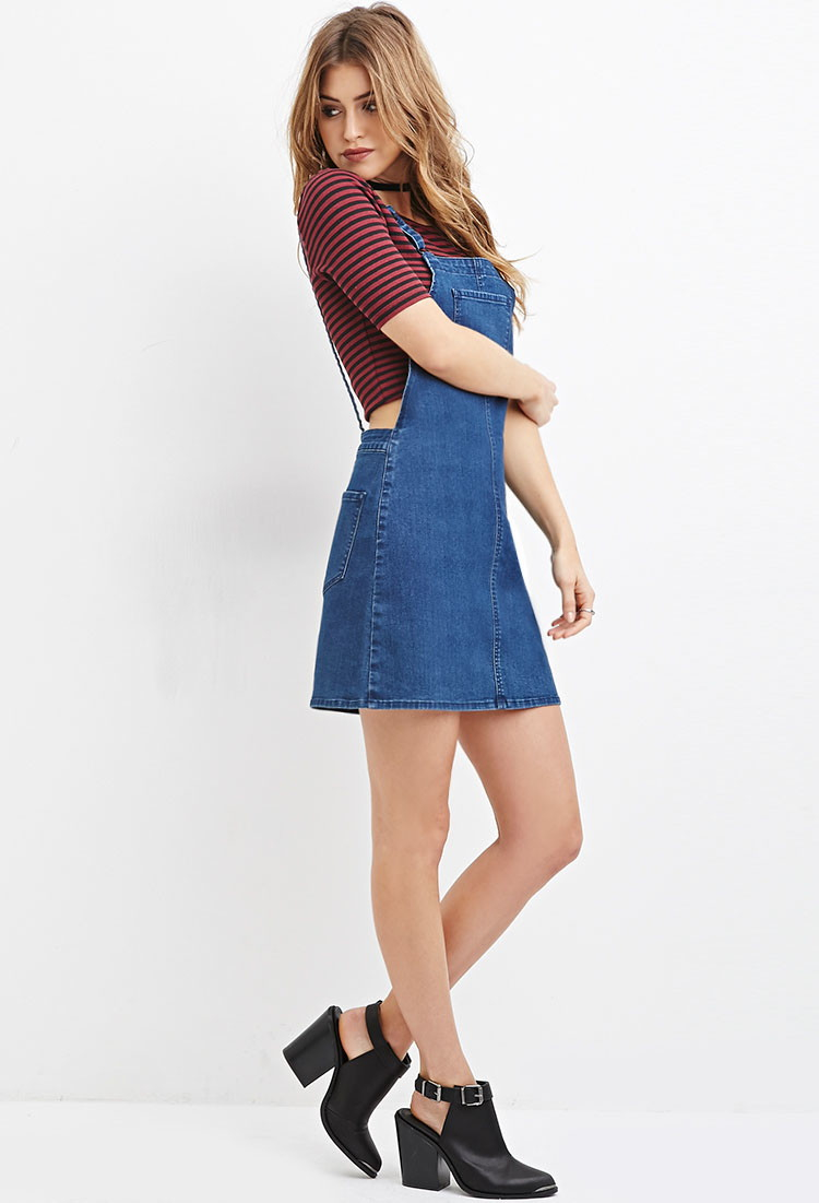 Forever 21 Overall Jean Jumper Dress Lace Up Excellent Xs Ebay